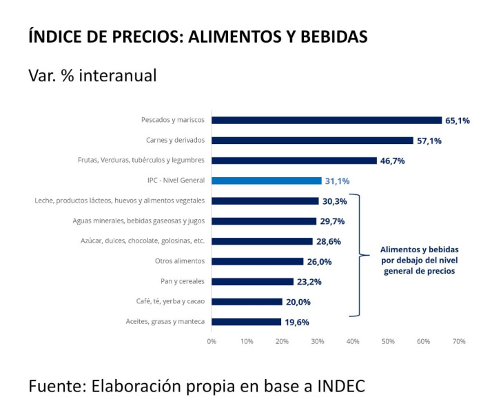 El análisis a nivel de productos dentro de los rubros refuerza esta lectura. En el caso de Alimentos y bebidas, la suba del índice estuvo concentrada en un número reducido de categorías, como carnes, pescados y frutas y verduras, mientras que una gran parte de los productos básicos mostró aumentos inferiores al nivel general. La menor inflación en bienes esenciales y de consumo masivo contribuyó a moderar el impacto del aumento de precios sobre el poder adquisitivo de los hogares.