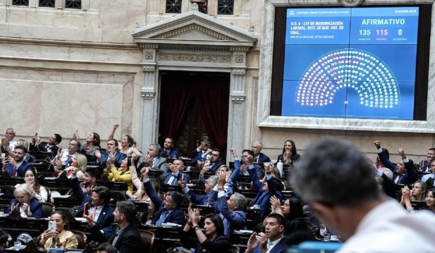 Con 135 votos a favor, 115 en contra y ninguna abstención el oficialismo logró una gran victoria después de que Diputados aprobara el proyecto de modernización laboral -anteriormente había recibido media sanción del Senado-, en medio del paro general y de la manifestación frente el Congreso por parte de los gremios y de la oposición.